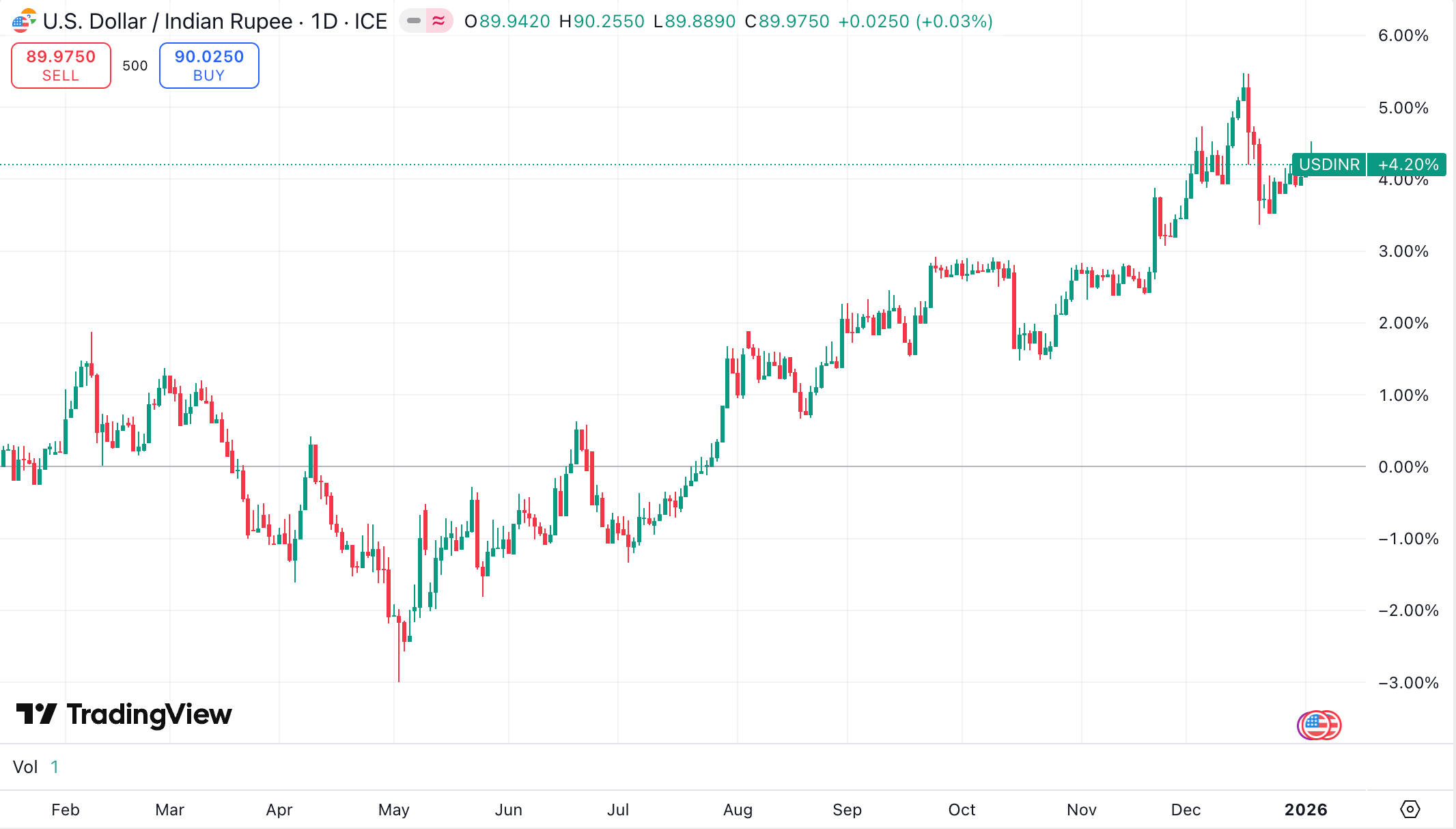 The USD/INR also recorded its lowest level in December of ₹91.14 per $. This depreciation was driven by several factors: