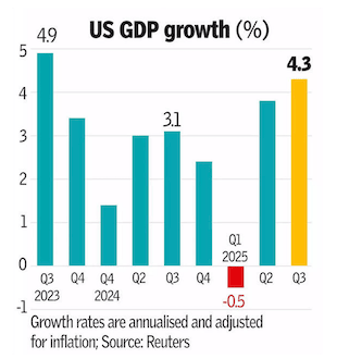 This was followed by the US FED cutting rate by 25 bps in FOMC and signalling a dovish stance. US CPI also cooled down to 2.61% and surprisingly the US economy grew at a healthy 4.3% in the September quarter, fastest pace in two years, putting to rest the speculations regarding the US entering a recession. Despite the cut, the FED maintained its outlook for only one rate cut in 2026.