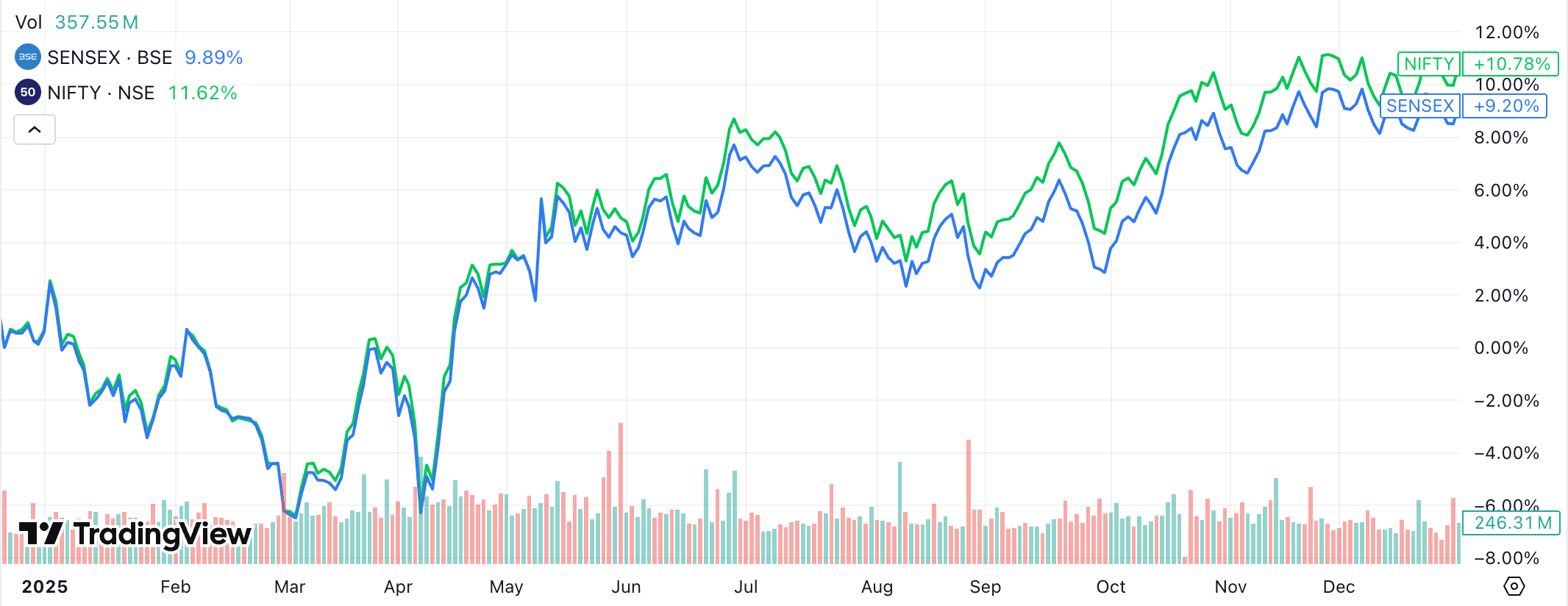 Last month of the last year was full of events that can shape the market trends and returns. NIFTY and Sensex both ended the last trading day of 2025 in the green, with NIFTY up 0.6% and Sensex up 0.5% and cumulatively up 10.78% and 9.2% respectively for the year ending 2025.