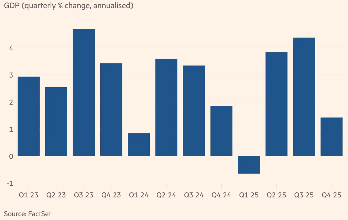 US Q4 GDP numbers were also released – growth fell sharply 1.4%, missing estimates which were around 2.8%.